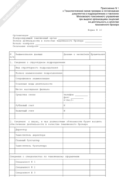 - 1338Форма документа по итогам проведенной проверки организации для осуществления деятельности в качестве таможенного брокера. Форма № 1С