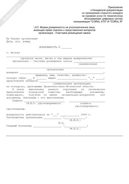 - 1322Форма доверенности на уполномоченное лицо, имеющее право подписи и представления интересов организации — участника размещения заказа на участие в конкурсе на оказание услуг по техническому обслуживанию цифровых систем коммуникации «CORAL ATS» и «CORAL R»