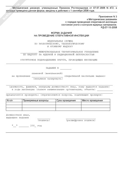 - 1558Форма задания на проведение оперативной инспекции состояния учета и контроля ядерных материалов