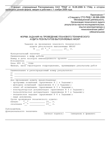 - 1559Форма задания на проведение планового технического аудита используемых результатов научно-исследовательских, опытно-конструкторских и технологических работ (обязательная)
