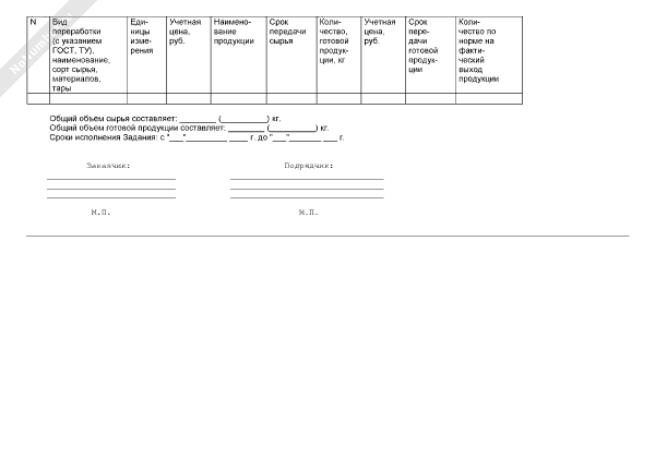 - 1557Форма задания заказчика подрядчику (приложение к договору подряда на переработку мясной продукции)
