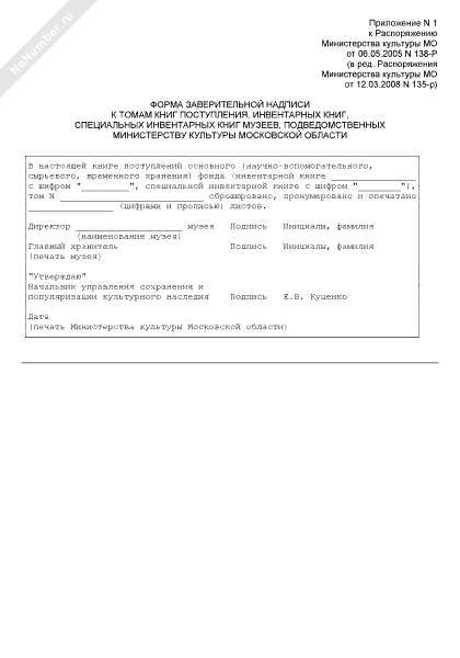 - 1549Форма заверительной надписи к томам книг поступления, инвентарных книг, специальных инвентарных книг музеев, подведомственных Министерству культуры Московской области