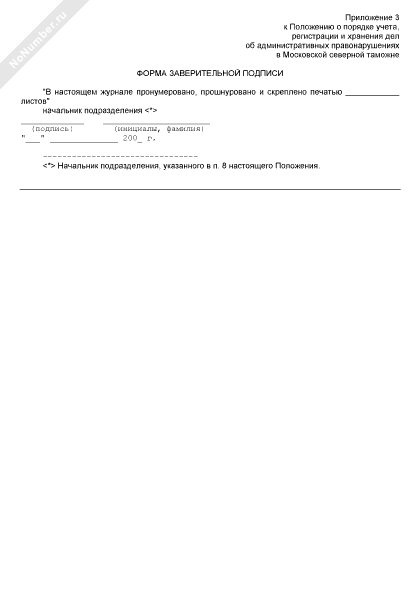 - 1550Форма заверительной подписи в журнале учета дел об административных правонарушениях в таможенных органах Российской Федерации