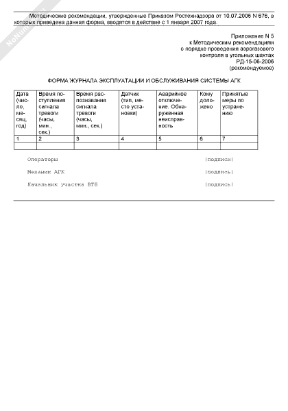 - 1548Форма журнала эксплуатации и обслуживания системы аэрогазового контроля в угольных шахтах