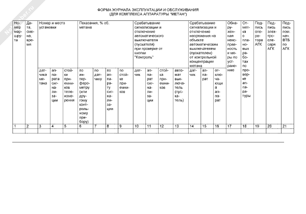 - 1547Форма журнала эксплуатации и обслуживания (для комплекса аппаратуры «Метан»)