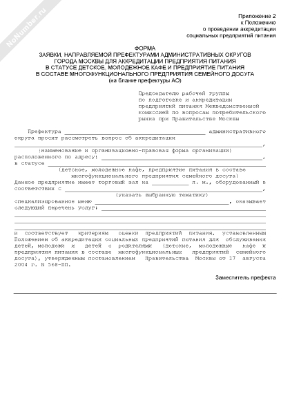 - 1794Форма заявки, направляемой префектурами административных округов города Москвы для аккредитации предприятия питания в статусе детское, молодежное кафе и предприятие питания в составе многофункционального предприятия семейного досуга