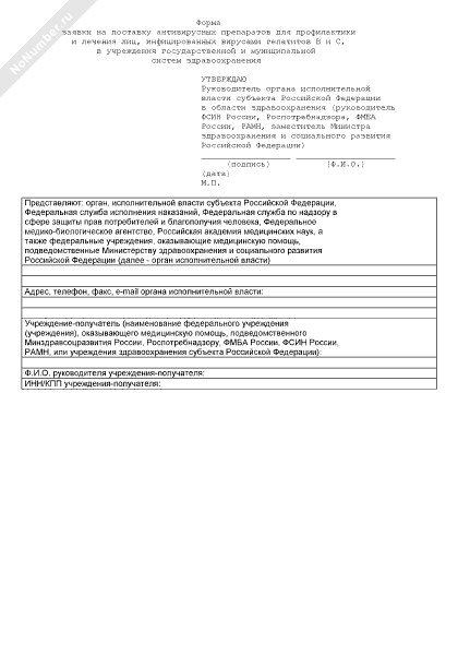 - 1782Форма заявки на поставку антивирусных препаратов для профилактики и лечения лиц, инфицированных вирусами гепатитов B и C, в учреждения государственной и муниципальной систем здравоохранения