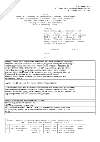 - 1784Форма заявки на поставку диагностических средств, применяемых в целях профилактики и выявления лиц, инфицированных вирусами гепатитов B и C, в учреждения государственной и муниципальной систем здравоохранения