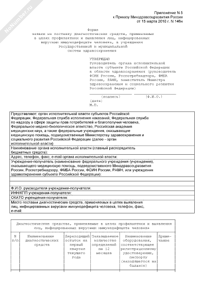 - 1783Форма заявки на поставку диагностических средств, применяемых в целях профилактики и выявления лиц, инфицированных вирусами иммунодефицита человека, в учреждения государственной и муниципальной систем здравоохранения