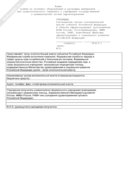 - 1786Форма заявки на поставку оборудования и расходных материалов для аудиологического скрининга в учреждения государственной и муниципальной систем здравоохранения