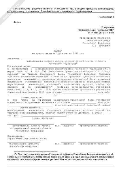 - 1789Форма заявки на предоставление субсидии из бюджета Пенсионного фонда Российской Федерации бюджетам субъектов Российской Федерации на социальные программы субъектов Российской Федерации на 2010 год