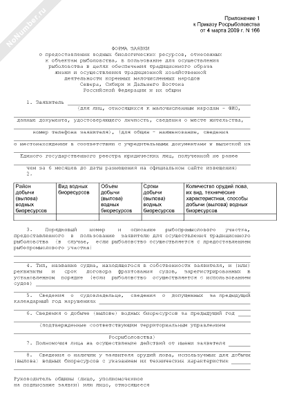 - 1791Форма заявки о предоставлении водных биологических ресурсов, отнесенных к объектам рыболовства, в пользование для осуществления рыболовства в целях обеспечения традиционного образа жизни и осуществления традиционной хозяйственной деятельности коренных малочисленных народов Севера, Сибири и Дальнего Востока Российской Федерации и их общин