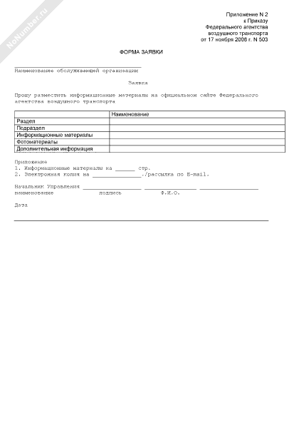 - 1792Форма заявки размещения информационные материалы на официальном сайте Федерального агентства воздушного транспорта