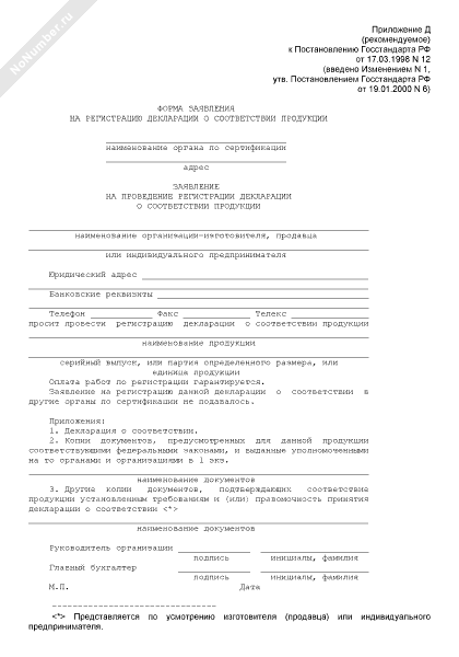 - 1799Форма заявления на регистрацию декларации о соответствии продукции