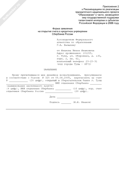 - 1839Форма заявления на открытие счета в кредитном учреждении Сбербанка России