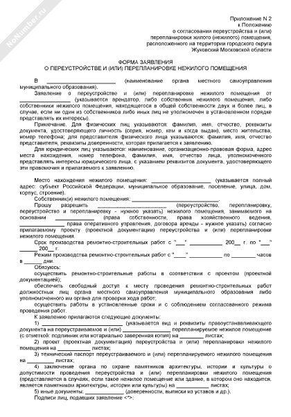 - 1838Форма заявления о переустройстве и (или) перепланировке нежилого помещения, расположенного на территории городского округа Жуковский Московской области