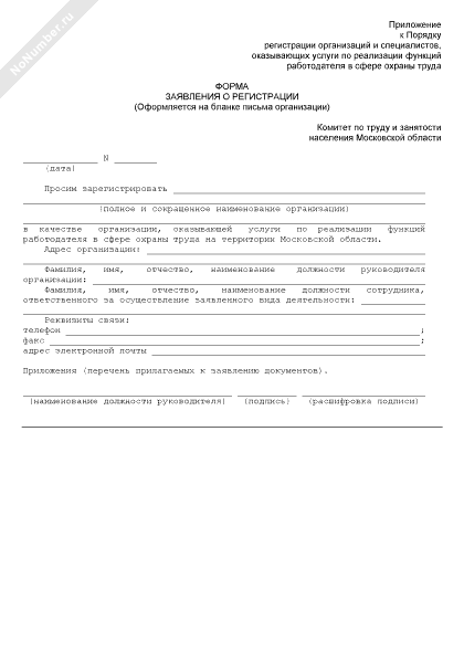 - 1840Форма заявления о регистрации организации, оказывающей услуги по реализации функций работодателя в сфере охраны труда на территории Московской области