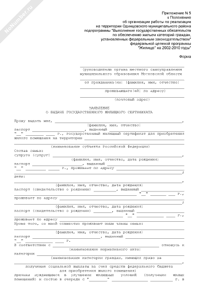 - 1825Форма заявления о выдаче государственного жилищного сертификата на территории Одинцовского муниципального района Московской области