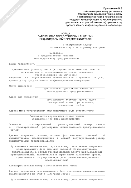 - 1873Форма заявления о предоставлении лицензии на осуществление деятельности по разработке и (или) производству средств защиты конфиденциальной информации индивидуальному предпринимателю