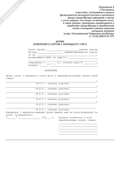- 1870Форма заявления о снятии гражданина и его семьи с жилищного учета города Москвы