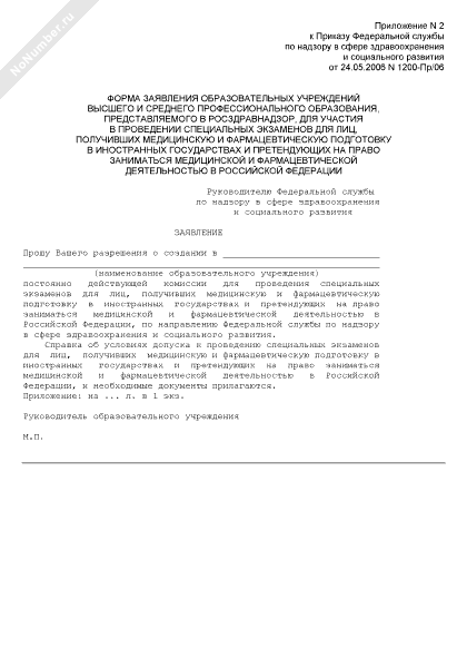 - 1863Форма заявления образовательных учреждений высшего и среднего профессионального образования, представляемого в Росздравнадзор, для участия в проведении специальных экзаменов для лиц, получивших медицинскую и фармацевтическую подготовку в иностранных государствах и претендующих на право заниматься медицинской и фармацевтической деятельностью в Российской Федерации