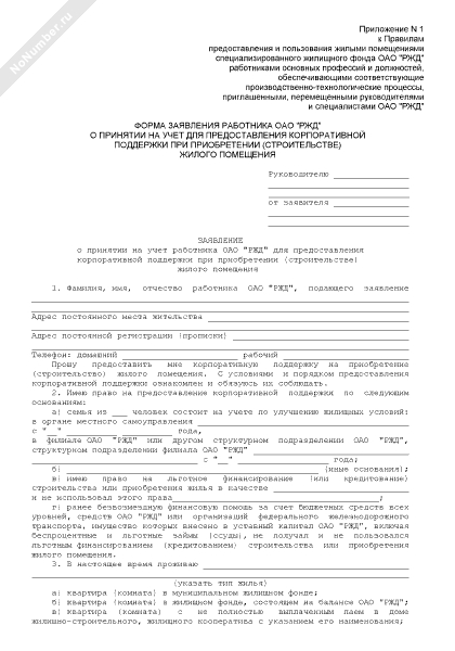 - 1864Форма заявления работника ОАО «РЖД» о принятии на учет для предоставления корпоративной поддержки при приобретении (строительстве) жилого помещения
