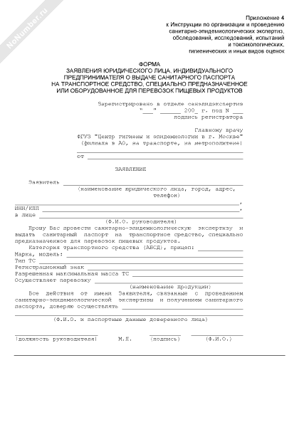 - 1861Форма заявления юридического лица, индивидуального предпринимателя о выдаче санитарного паспорта на транспортное средство, специально предназначенное или оборудованное для перевозок пищевых продуктов