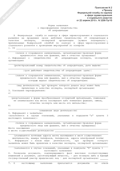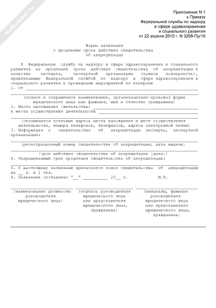 - 1970Форма заявления о продлении срока действия свидетельства об аккредитации в качестве эксперта (экспертной организации), привлекаемых Федеральной службой по надзору в сфере здравоохранения и социального развития