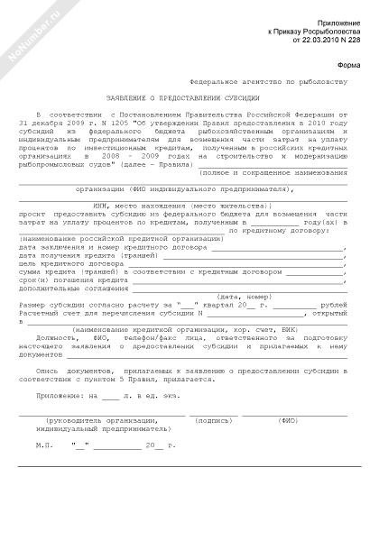 - 1964Форма заявления о предоставлении субсидии из федерального бюджета для возмещения части затрат на уплату процентов по кредитам, полученным в российских кредитных организациях в 2009–2010 годах на создание в субъектах Российской Федерации специализированных рынков по реализации рыбной продукции