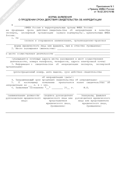 - 1961Форма заявления о продлении срока действия свидетельства об аккредитации в качестве эксперта (экспертной организации), привлекаемых Федеральным медико-биологическим агентством России