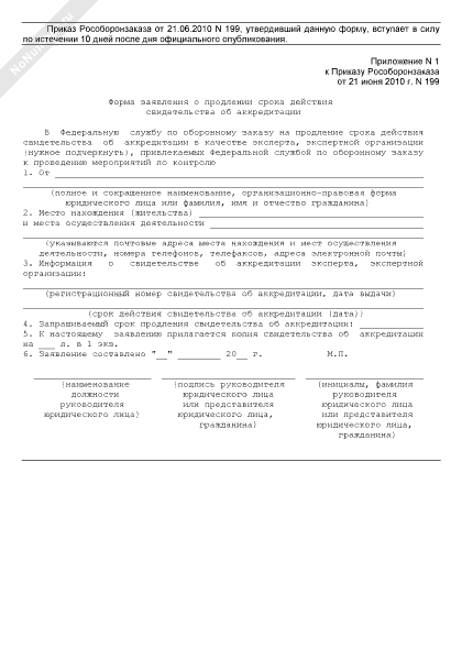 - 1974Форма заявления о продлении срока действия свидетельства об аккредитации в качестве эксперта, экспертной организации, привлекаемых Федеральной службой по оборонному заказу к проведению мероприятий по контролю