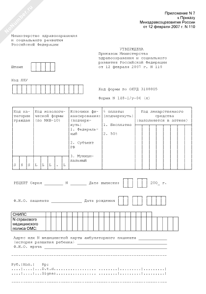 Рецептурный бланк. Форма № 148-1/у-06 (л)