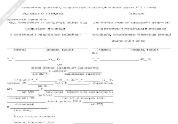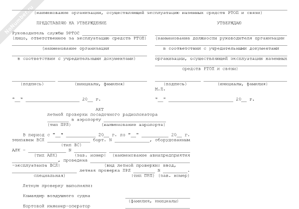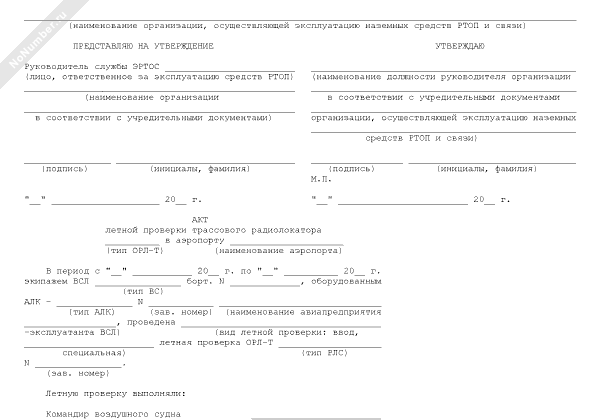 Форма акта летной проверки аэродромного радиолокатора в аэропорту