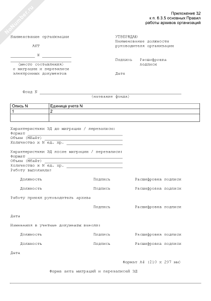 Форма акта миграций и перезаписей электронных документов (ЭД)