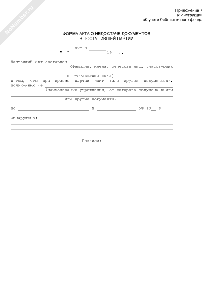 Форма акта о недостаче документов в поступившей партии