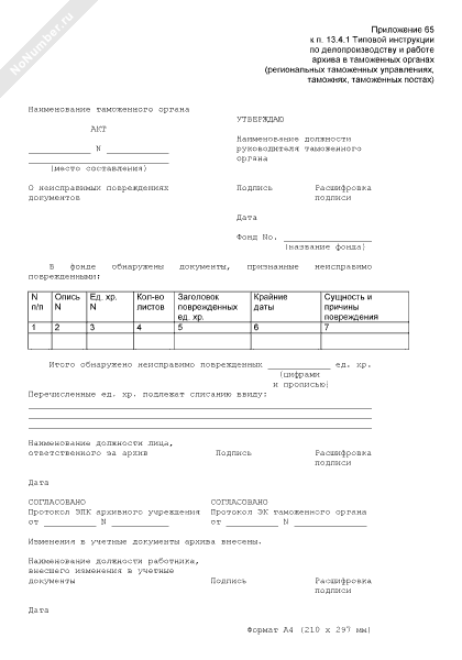 Форма акта о неисправимых повреждениях документов таможенного органа