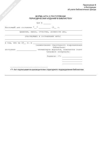 Форма акта о поступлении периодических изданий в библиотеку
