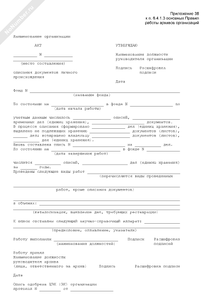 Форма акта описания документов личного происхождения