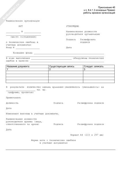 Форма акта о технических ошибках в учетных документах (рекомендуемый образец заполнения)