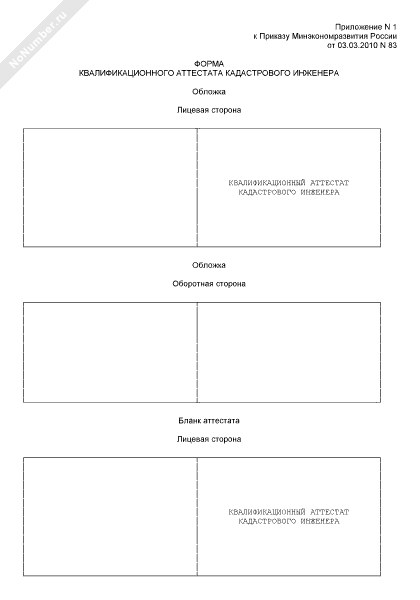 Форма квалификационного аттестата кадастрового инженера