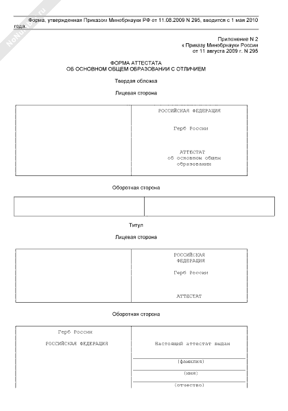 Форма аттестата об основном общем образовании