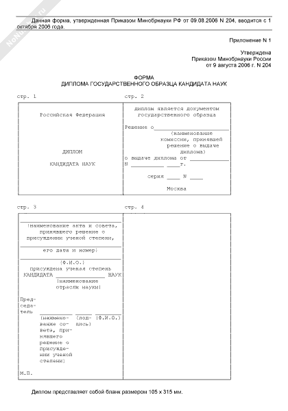 - Источник– Приказ Минобрнауки РФ от 09.08.2006 № 204