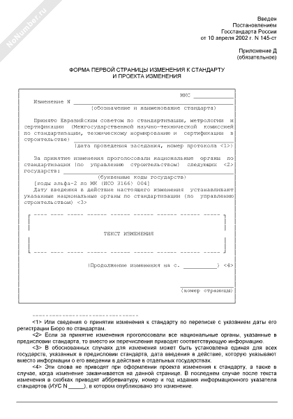 Форма первой страницы изменения к стандарту и проекта изменения