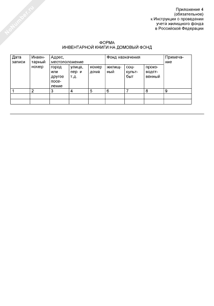 Форма инвентарной книги на домовый фонд