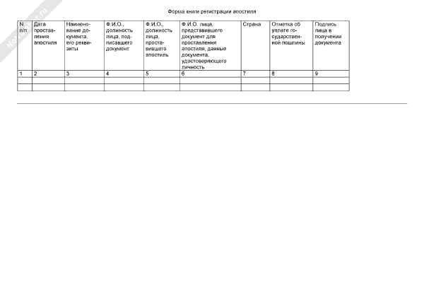 Форма книги регистрации апостиля