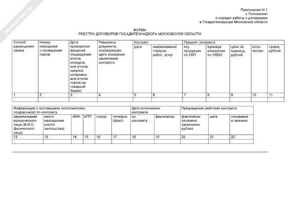 Форма листа регистрации договоров (рекомендуемый образец заполнения)