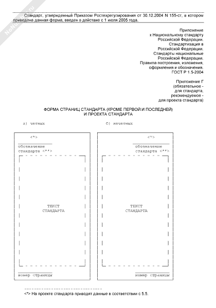 Форма страниц стандарта (кроме первой и последней) и проекта стандарта