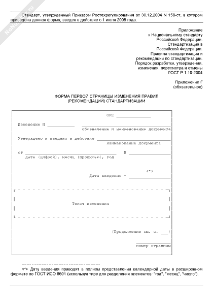 Форма первой страницы изменения правил (рекомендаций) стандартизации