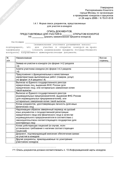 - Источник– Распоряжение Тендерного комитета г. Москвы от 28.03.2006 № 70-01-61/6