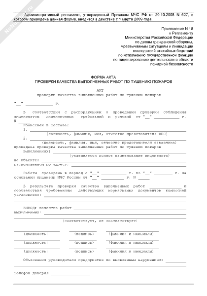 Форма акта проверки качества выполненных работ по тушению пожаров